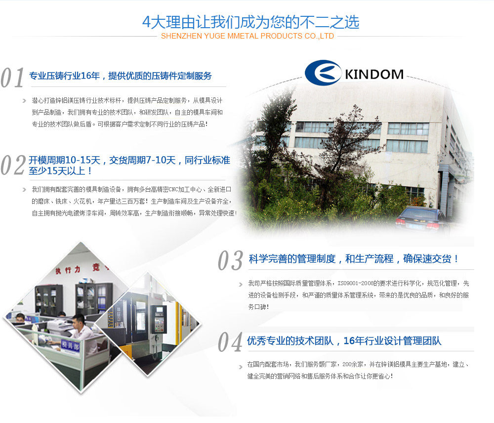 海寧長命摩擦材料有限公司,創(chuàng)建于2002年,是一家集模具設計、制造、鋁合金、鋅合金壓鑄、沖壓加工、表面處理為一體的專業(yè)制造公司,為汽車、摩托車、沙灘車、燈具、網(wǎng)絡天線、監(jiān)控設備等行業(yè)提供精密壓鑄件及精密沖壓件。
